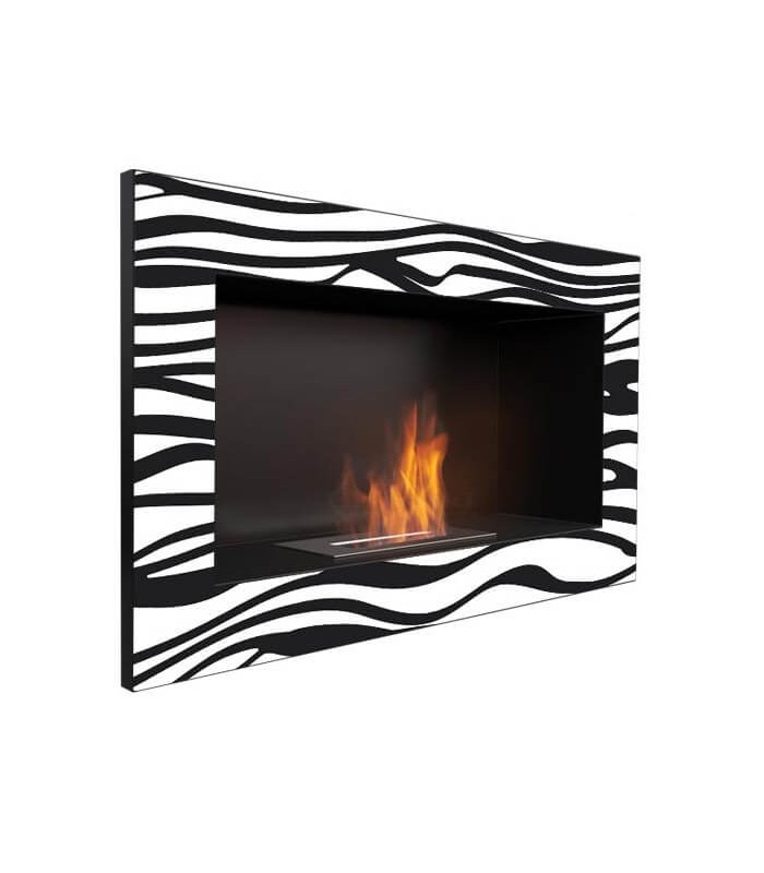 Una chimenea con acabado Cebra? Así es nuestro modelo en exclusiva GOLF ZEBRA TÜV es encastrable con un tamaño de 64,8 x 37,4 cm. Con certificado TÜV. Incluye un quemador Q004 TÜV de 1’8 kW. Apta para calentar espacios de unos 10 m². Disponible opcionalmente con cristal.