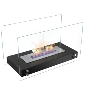 KILO TÜV es una peculiar biochimenea portátil que combina el negro mate con inserciones en acero inoxidable. Es una de las chimeneas de bioetanol más planas con tan solo 8’5 cm de altura. Podemos calentar estancias de hasta 10 m². Con su agradable y fino diseño podemos situarla en diferentes espacios, sobre mesas, suelos... Siempre siguiendo las normas de uso y seguridad.