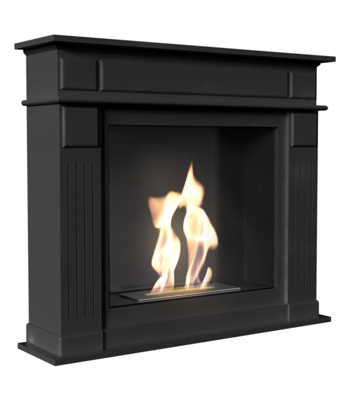 La chimenea de bioetanol NOVEMBER TÜV BLACK con certificado TÜV de calidad. De diseño tradicional pero también moderno y actual, acabada en negro mate. Tiene 115 cm de largo y 101 cm de alto, incorpora un quemador regulable con una potencia máxima de 4’2 kW, apta para calentar 30 m².