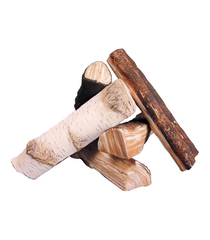 Este pack se compone de 5 troncos de diferentes especies de árbol. Le dará un aspecto único y realista a su chimenea. Se sitúan encima del quemador (sin obstaculizar por completo la salida de la llama) y podrá contemplar y disfrutar del fuego saliendo a través de ellos. ¿Había imaginado algo así antes?