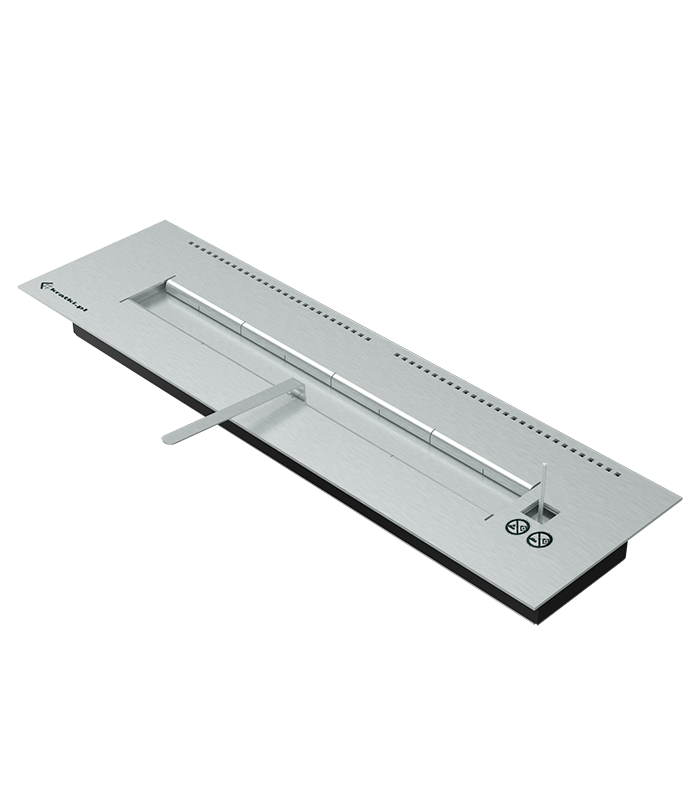 Quemador de bioetanol regulable fabricado el acero de 3 mm con tecnología de bajo consumo. Llama de 50 cm y 6,7 kW, puede ser integrarlo en una amplia gama de materiales de construcción o metal.